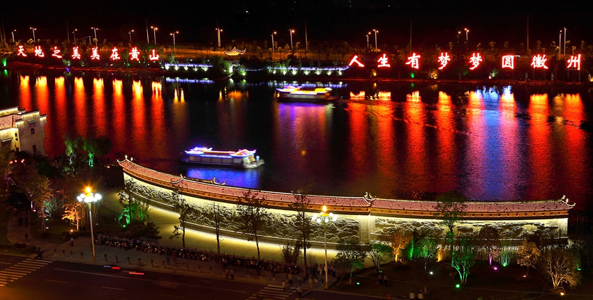 坐船路線:湖邊古村落——徽州照壁——林廊清影——市民中心、市體育館、市游泳館——世紀廣場——黃口橋——廣宇橋——新安橋——老街(小吃一條街返)——孫王閣——尤溪古渡——湖邊古村落——屯浦歸帆——屯溪碼頭——濕地公園——摩崖石刻——返程(古村落)