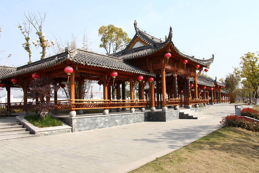 林廊清影:它是按照徽州水口園林意象建設,供市民和游人休憩、觀景的場所。亭廊為徽派建筑風格的亭廊組合,樟木制成,總長108米,建筑面積為400平方米,配套廣場面積530平方米;廊上布置楹聯,基本采用原徽州各縣薈萃的老對聯,經歷了數百年風雨的洗禮。楹聯分三個亭廊區(qū)布局,所有亭廊進出口的外聯以寫山水風光為主,內聯則每個亭廊都相應集中一個主題,按讀書、做人、經商、做官等各行業(yè)分配,除個別外,所有字體統(tǒng)用魏碑體,黑底金字,明了易識,通俗易懂,達到和諧相宜、過目不忘的初衷。