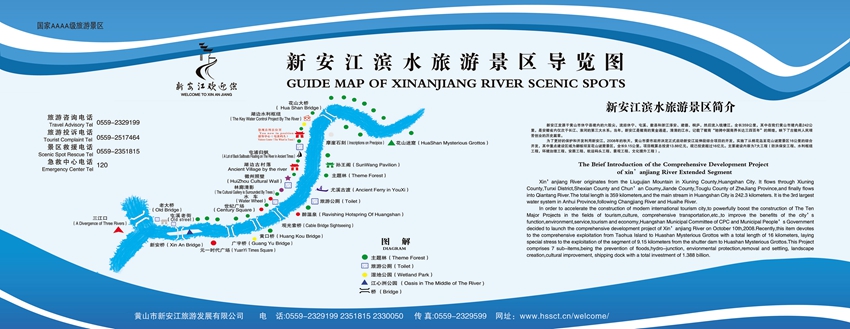 新安江發(fā)源于黃山市休寧縣境內的六股尖,流經休寧、屯溪、歙縣和浙江淳安、建德、桐廬入錢塘江。全長359公里,其中黃山市內干流長242.3公里,是安徽省內僅次于長江、淮河的第三大水系。作為黃山人民的母親河,新安江是古徽州文明的搖籃。徽州地處皖南山區(qū),山是閉塞的屏障,水卻是開放的大門。當年,新安江是徽商的黃金通道,備嘗耕地不足的徽州先輩,駕一葉扁舟,把山貨源源不斷地運往山外,到外面世界去闖蕩,又從山外帶回萬貫錢財,在家鄉(xiāng)建設世外桃源。清清的江水,記載了徽商“馳騁中國商界長達三四百年”的輝煌,映下了古徽州人民艱苦創(chuàng)業(yè)的歷史篇章。新安江兩岸集聚了大量歷史人文資源,是古徽州民俗民居、生產生活等徽文化的主要展示區(qū),其中“國家級”稱號的就有6處,如屯溪老街、花山謎窟—漸江風景名勝區(qū)、萬安古鎮(zhèn)、漁梁壩、竹山書院、雄村等。隨著徽杭高速公路建成通車,新安江告別了往日繁忙的水運。但她并沒有沉寂,她的一江秀水、兩岸青山和沿途景致,依然魅力無限地吸引著人們接踵而至,投入山水畫廊般的美妙佳境之中。