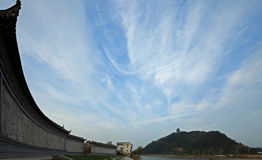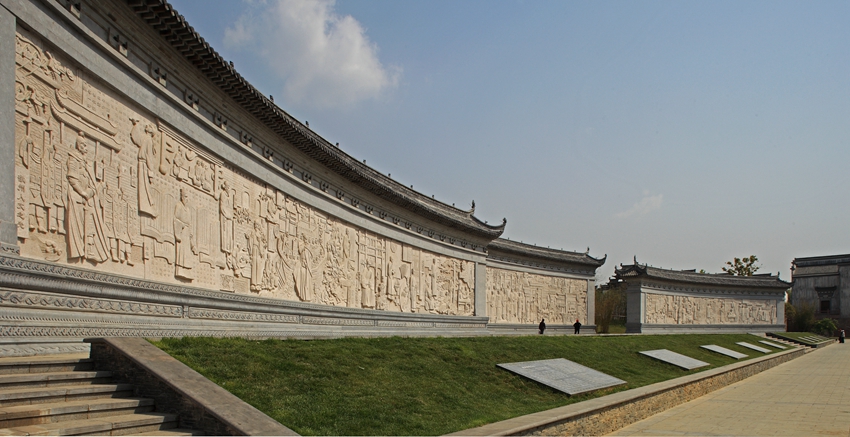北面照壁為《新安山水勝境》,從新安江正源六股尖發(fā)端,經(jīng)齊云山、黃山至千島湖,延至錢塘江入海整個(gè)流域全程。沿途鐫刻風(fēng)景名勝30余處。寓意萬古新安,源遠(yuǎn)流長,山水秀美,文化燦爛。