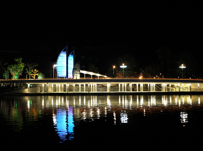 1934年4月,著名文學(xué)家郁達(dá)夫來(lái)到屯溪,在新安江上、老大橋下的一只小船里小住過(guò)幾日,他被這里的風(fēng)光所迷戀和吸引,激發(fā)文思泉涌,寫(xiě)下了膾炙人口的《夜泊屯溪》:“新安江水碧悠悠,兩岸人家散若舟。幾夜屯溪橋下夢(mèng),斷腸春色似揚(yáng)州!睘橹噩F(xiàn)古徽商“屯浦歸帆”勝景,特建造了這處“屯浦歸帆”景觀廣場(chǎng)。廣場(chǎng)空間布局分上下兩層,建筑面積3200平方米,層高4.8米。上層廣場(chǎng)設(shè)有主題性雕塑——“歸帆”。下層空間是下沉廣場(chǎng),內(nèi)部設(shè)有茶室、咖啡吧及商鋪等,市民、游人可以在此品茗休憩,欣賞沿江美景。另外,以“落葉歸根”為主題,采用公共藝術(shù)形式來(lái)裝飾下層廣場(chǎng)空間的墻體和結(jié)構(gòu)柱子,創(chuàng)造出新穎獨(dú)特的公共藝術(shù)效果。